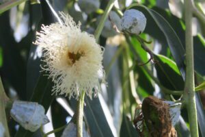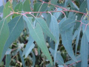 Eucalyptus is a tree with a mixed reputation. This stately tree  is renown for the “forest effect” due to the high transpiration rate of its leaves.  According to one report, “In Sydney, a large gum tree [eucalyptus] transpires up to 200 litres of water a day. A well-maintained garden in Sydney will transpire nearly twice the volume of water as the total rainfall.”