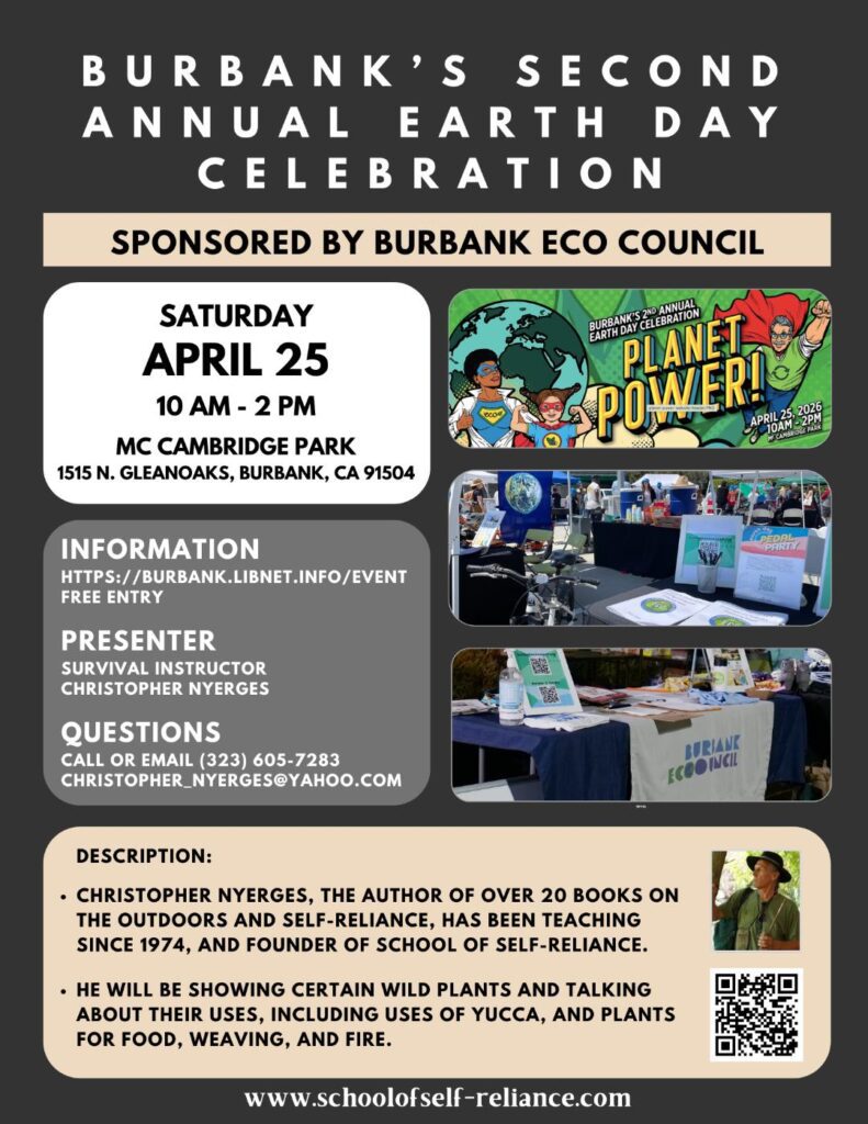 Christopher will be at a table, sharing information about wild plants and survival skills, from 11 to noon.