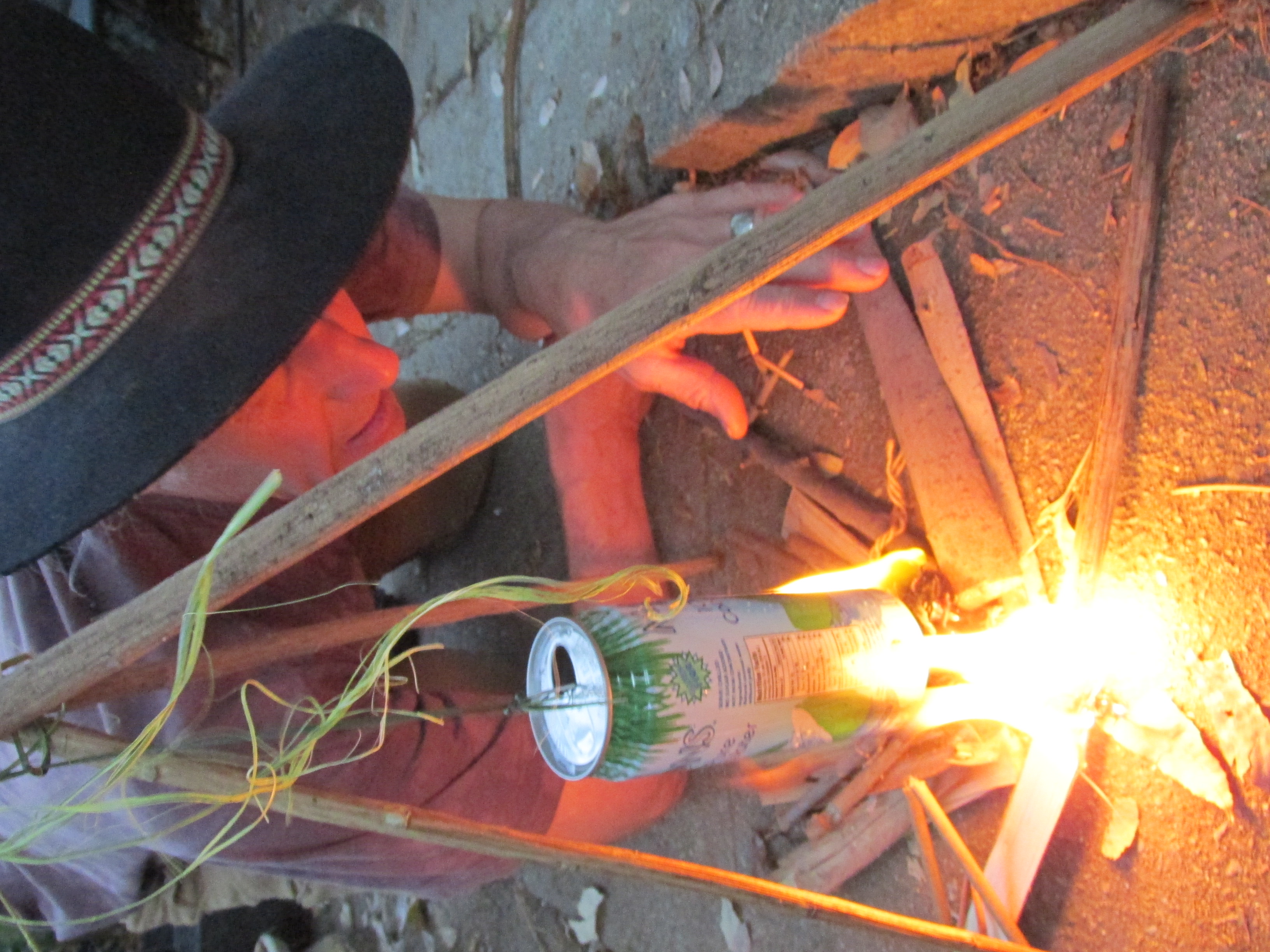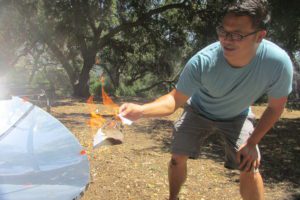You’ll see all these methods, and learn to never leave home without a butane lighter!  With the sun, fire can be made with a magnifying glass, reading glasses, the bottom of a cola can, with a Fresnel lens, and even with a solar cooker. We’ll explore how to make a fire from your car if your car breaks down in the remote wilderness.